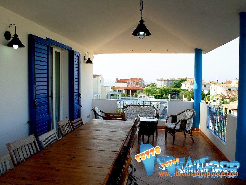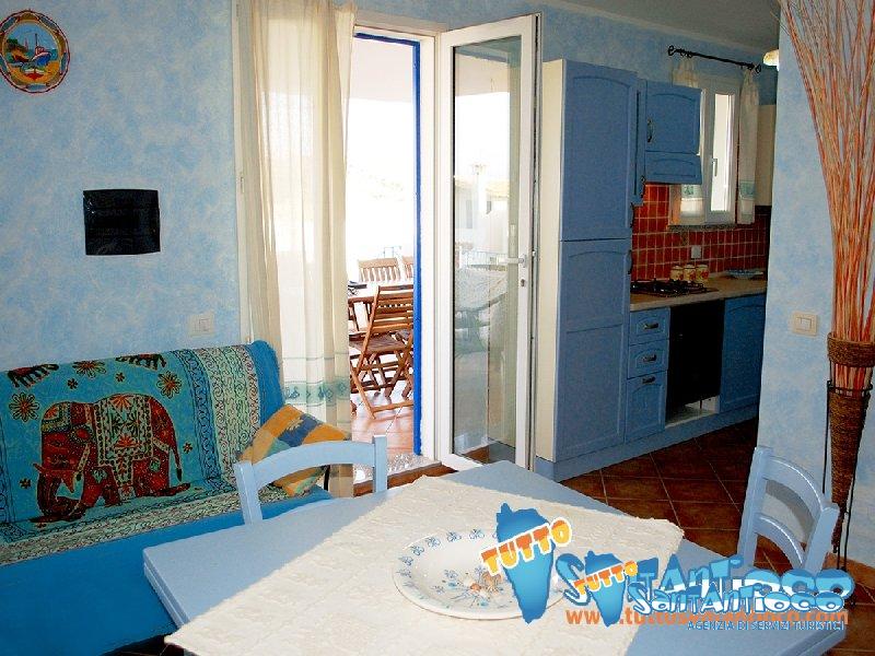 L'appartamento si trova al primo piano di un villino bifamigliare che ospita anche il rif. C93 del nostro sito, situato al piano terra dello stabile, con il quale condivide parte del giardino e attrezzature quali il barbecue e le altalene per i bimbi. La casa dispone di un'ampia e comodissima terrazza coperta, che ospita una lunga tavolata con sedie, utilizzabile eventualmente da tutti gli inquilini della villa (ovviamente solo nel caso in cui i due appartamenti venissero affittati ad uno stesso gruppo di amici e questi desiderassero riunirsi per i pasti). Gli interni offrono degli arredi di pregevole fattura, tipicamente sarda, e sono caratterizzati da tinte pastello che richiamano i colori della sabbia e del mare. Sono costituiti da zona giorno con angolo cottura, camera da letto matrimoniale climatizzata, cameretta con struttura a ponte e letto estraibile e bagno con doccia.