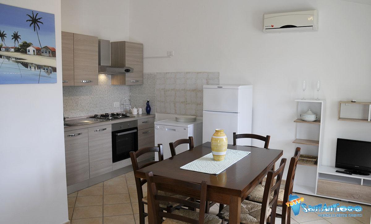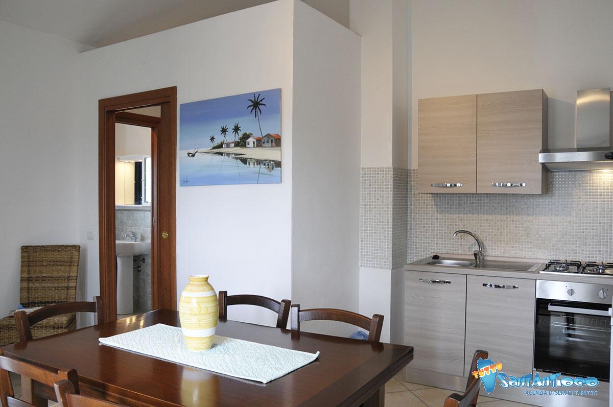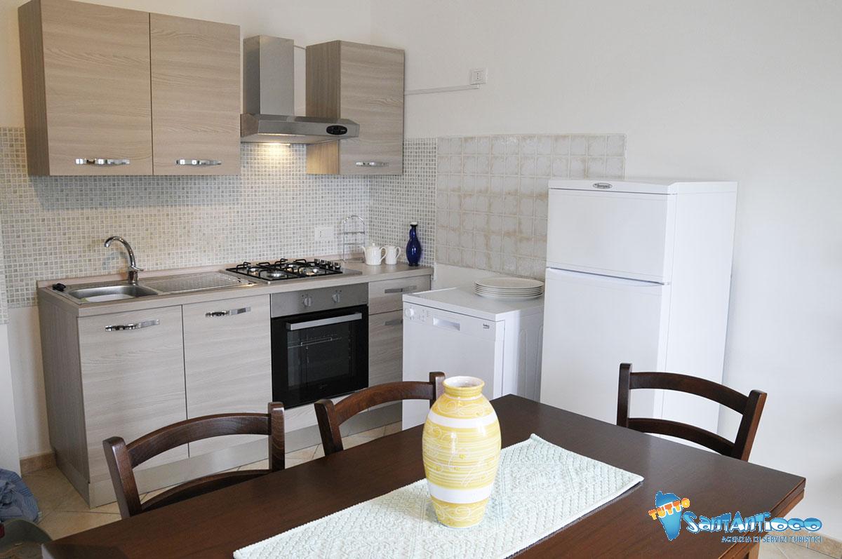 L'appartamento, situato al primo piano dello stabile, si compone di cucina bitabile, camera matrimoniale, cameretta doppia e bagno con doccia. Arredato a nuovo, offre anche posto auto e balcone con angolo di terrazza coperta per i pasti all'aperto. Vista la presenza di un altro appartamento al piano terra (affittabile e di prossima pubblicazione sul nostro sito), la soluzione si presta bene anche per due famiglie in cerca di due appartamenti vicini per una vacanza in comitiva.