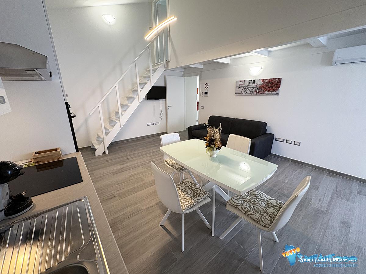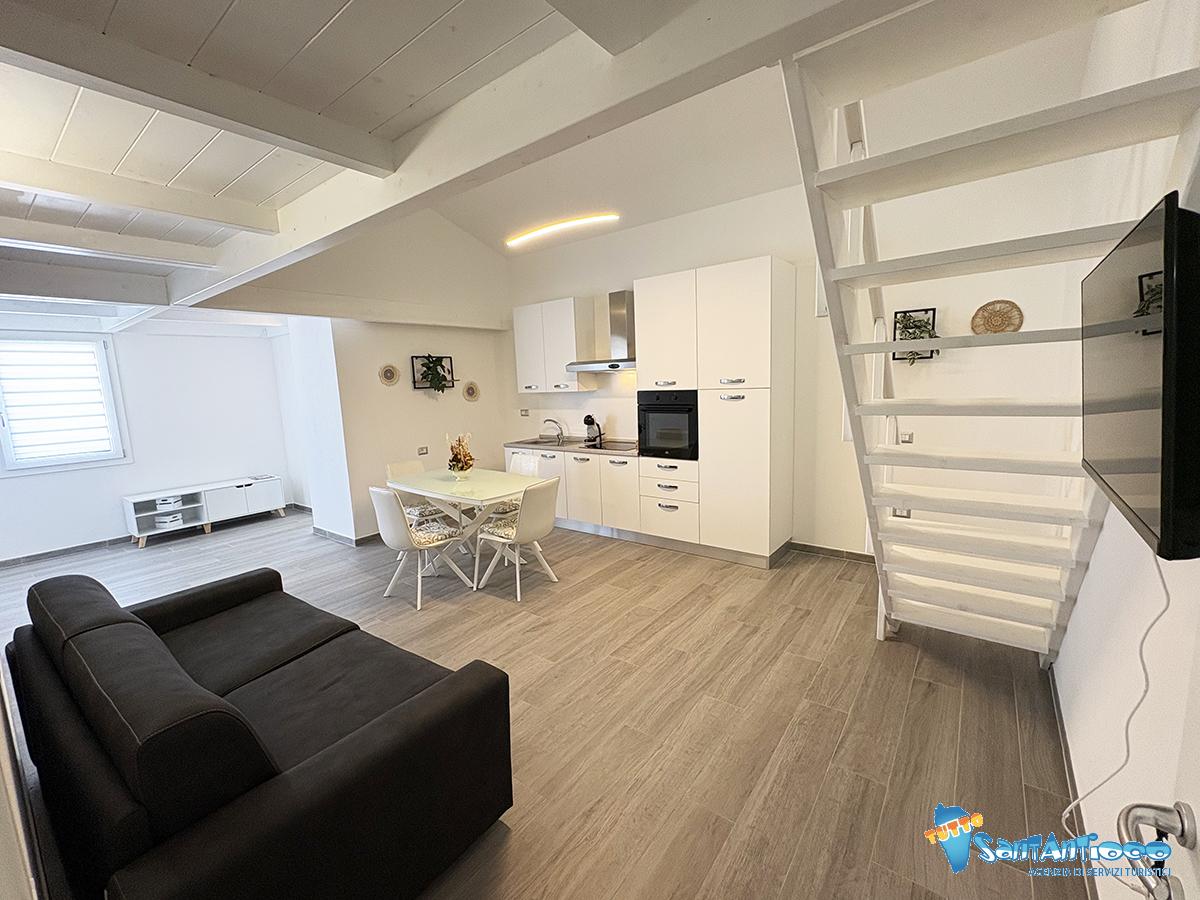 Tre camere da letto complessive, due matrimoniali molto spaziose di cui una soppalcata, che offre un ambiente intimo e riservato, con bagno privato dedicato mentre la terza camera presenta due letti singoli.