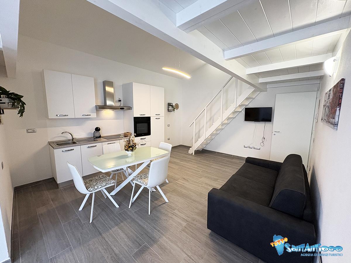 Luminoso e modernissimo appartamento ideale per famiglie o gruppi, composto da una zona giorno, ampia e luminosa, dotata di angolo cottura completamente attrezzato e climatizzato, perfetta per momenti di relax e convivialità .