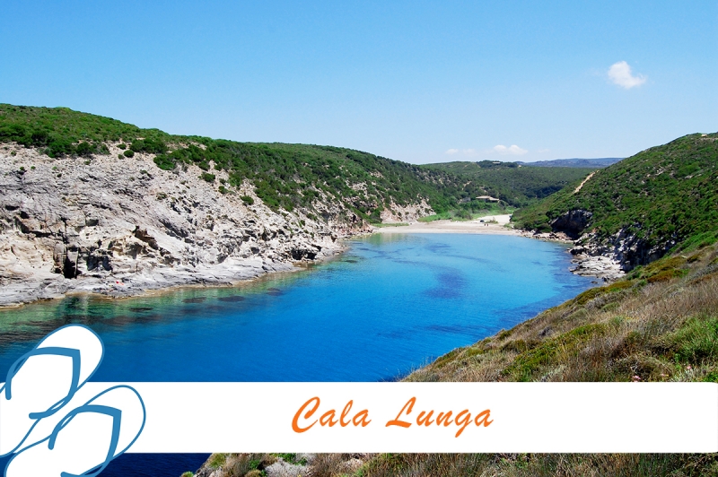 La costa occidentale è prevalentemente rocciosa ed è caratterizzata da tratti di scogliera balneabili ricchi di attrattiva: Is Praneddas (con il suo famoso Arco dei baci), Cala Sapone (che offre anche una piccola spiaggia di sabbia), Cala della Signora, Cala Tuffi . La spiaggia di Cala Lunga, più a nord, interrompe il frastagliato tratto di scogliera con una lunga insenatura sabbiosa alla quale deve il suo caratteristico nome. Dopo un ulteriore tratto di scogliera frastagliato e selvaggio, a pochi chilometri da Calasetta, nuove spiagge si susseguono l’una all’altra con sabbie bianche e acque limpide: Spiaggia Grande, Le Saline, Sotto Torre (quest’ultima può essere raggiunta anche a piedi dal paese di Calasetta).